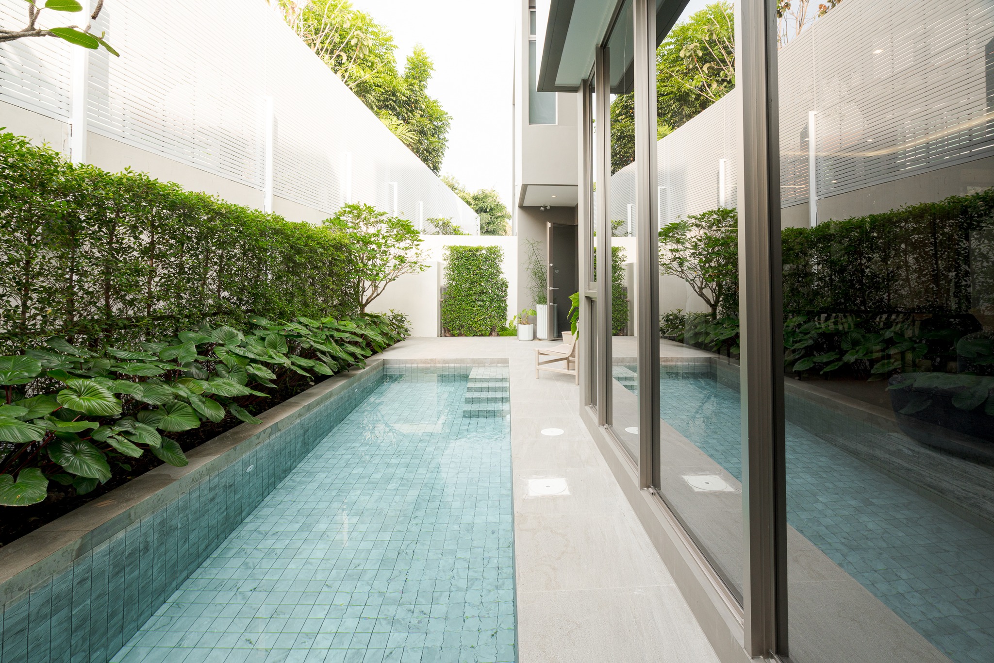 Private มาก ๆ ด้วยสังคมส่วนตัวขนาดเล็ก มอบอิสระในการอยู่อาศัย โดยไม่มีค่าส่วนกลางรายปี เหมาะกับคนที่ต้องการความสงบและความเรียบง่ายอย่างแท้จริง มีเพียง 6 ยูนิต บนเนื้อที่กว่า 1 ไร่ครึ่ง ทุกหลังตั้งอยู่บนที่ดินใหญ่กว่า 100 ตร.ว. พร้อมพื้นที่ใช้สอย 532–561 ตร.ม. ครบครันด้วย 4 ห้องนอน 5 ห้องน้ำ 6 ที่จอดรถ* ลิฟต์ในบ้าน และสระว่ายน้ำส่วนตัว กระจกเต็มบานเปิดรับวิวสวนและสระ เชื่อมพื้นที่พักผ่อนเข้ากับธรรมชาติได้อย่างลงตัว นอกจากนี้ยังมี Façade ที่โดดเด่นด้วยการกรุหิน Travertine ลวดลายเฉพาะตัว สื่อถึงความพิถีพิถันในทุกดีเทล และคุณภาพที่คัดสรรมาเพื่อชีวิตที่สมบูรณ์แบบในทุกมิติ